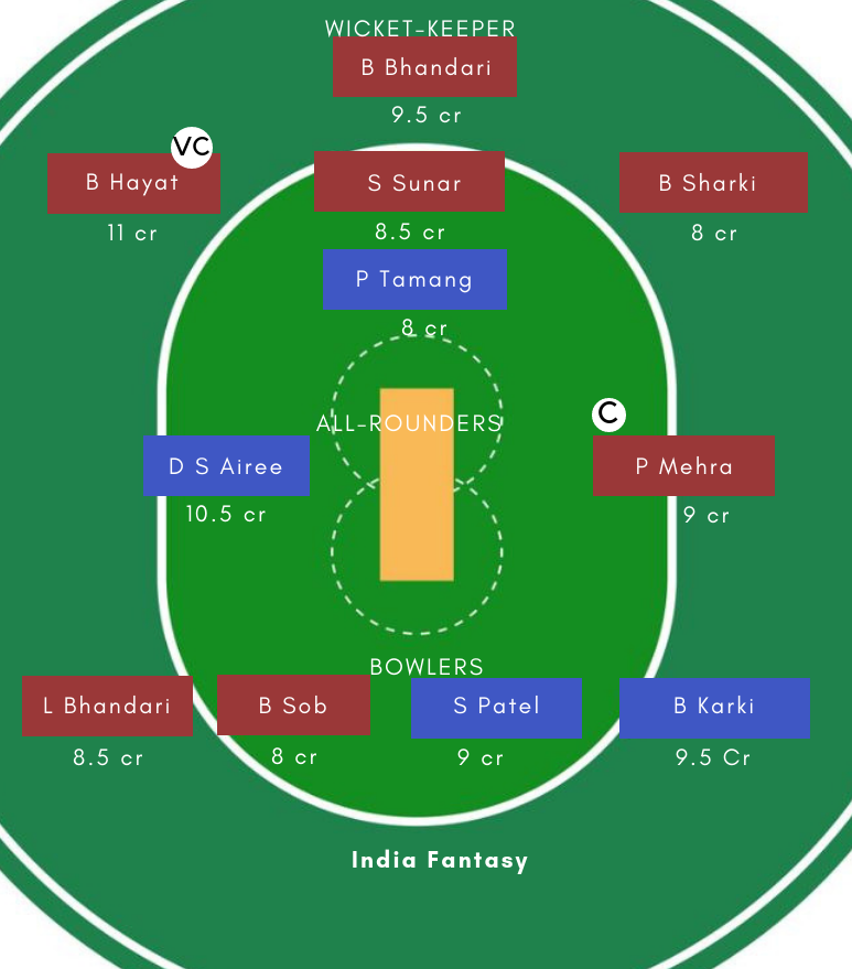 Batsmen: S Pandey, S Jhora, P Tamang, JS Thakuri