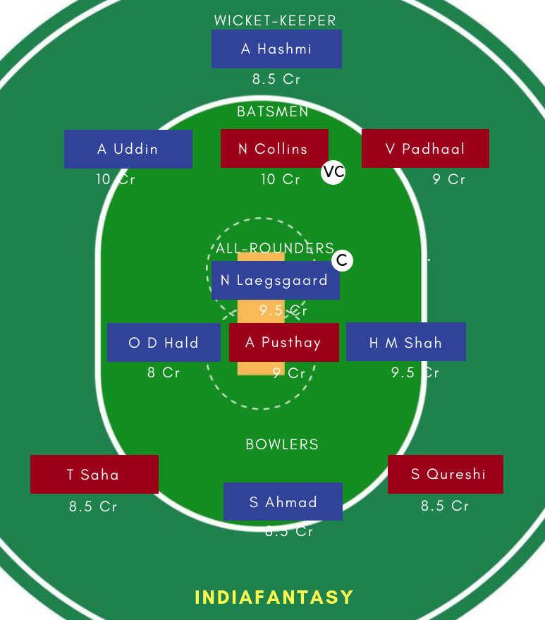 NG Collins, P Gallagher, V Padhaal, A Pusthay, R Pathak, AK Mohan, TK Saha, M Chauhan, H Dandapani, S Qureshi,