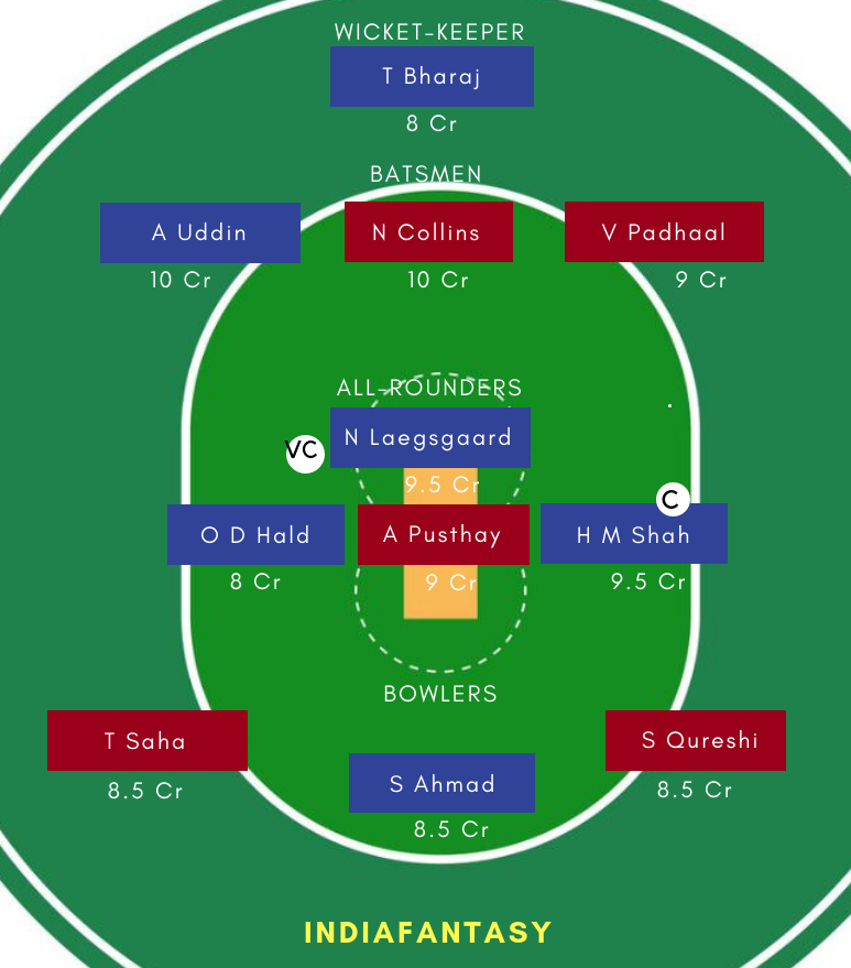 N Laegsgaard, H Shah (c), Anique Uddin, Zishan Shah, Rizwan Mahmood, J Jojo, Delawar Khan, TS Bharaj, OD Hald, Omar Hayat, Bashir Shah