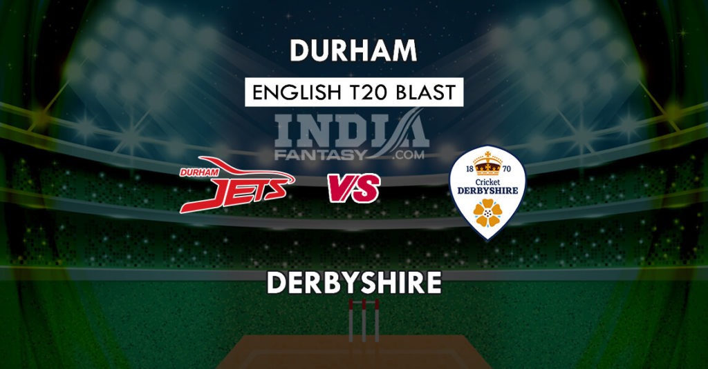 इंग्लिश T20 ब्लास्ट के नॉर्थ ग्रुप के अगले मुकाबले में दो ऐसी टीम आमने सामने होगी जिसका इस टूर्नामेंट में भविष्य पहले ही तय हो चुका है। यह मैच Durham Jets और Derbyshire की टीम के बीच खेला जाना है। Durham Jets इस समय पॉइंट टेबल में दूसरे स्थान पर है जबकि दूसरी टीम Derbyshire की टीम 7 वें स्थान पर है और टूर्नामेंट में बाहर हो चुकी है।