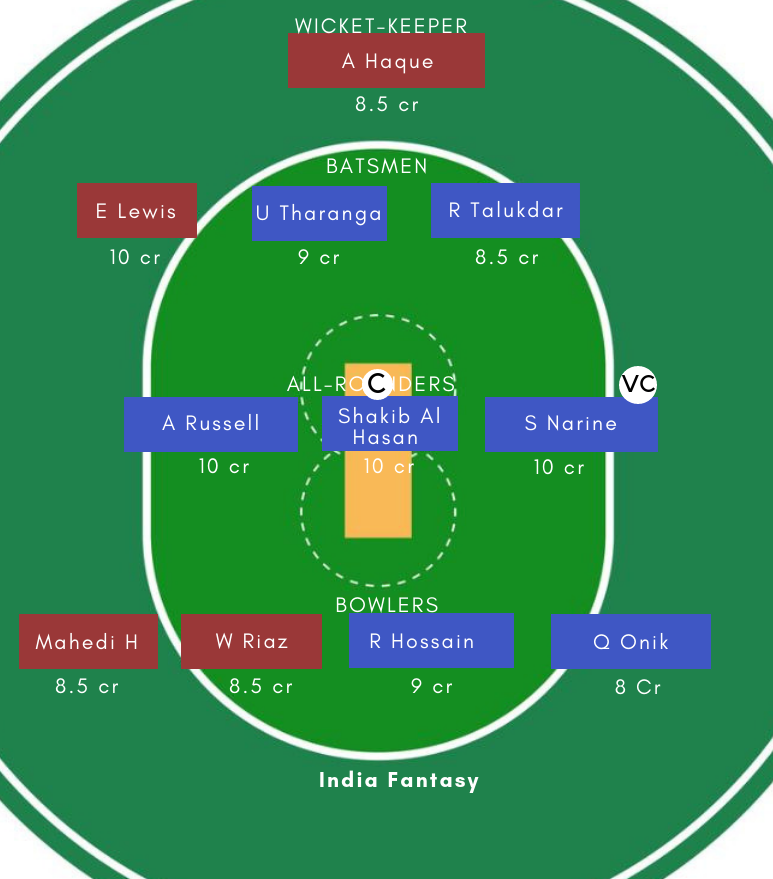 Shakib Al Hasan, Andre Russell and Sunil Narine are the key contributors with both bat and ball.