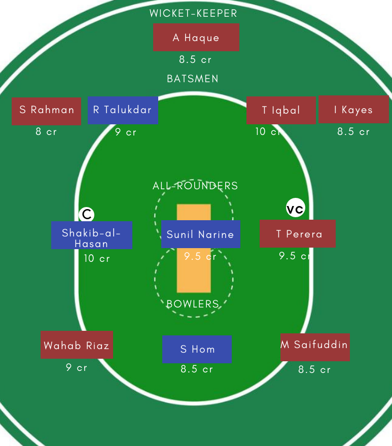 All-rounder– Sunil Narine, Kieron Pollard, Shakib Al Hasan (c), Andre Russell