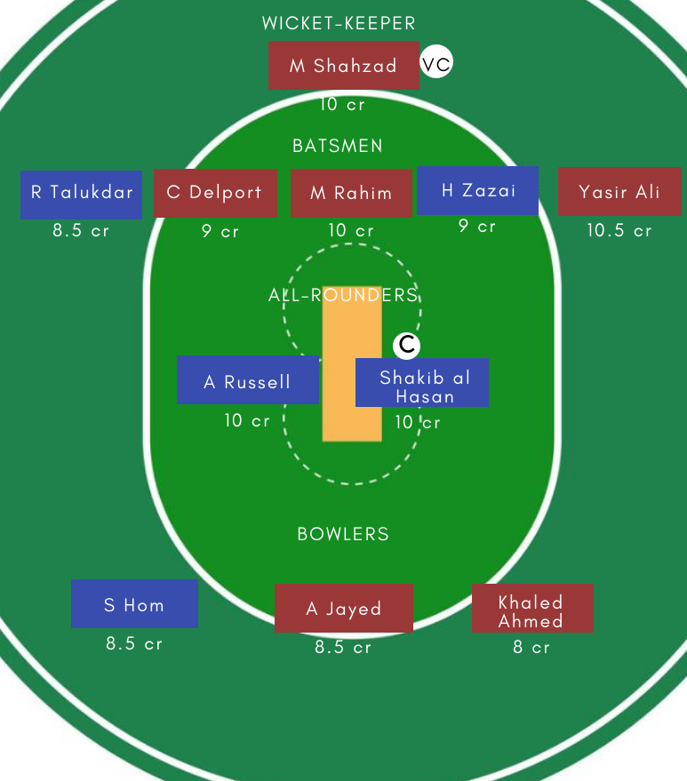 Batsmen-Cameron Delport, Mushfiqur Rahim (c), Shadman Islam, Yasir Ali, Najibullah Zadran