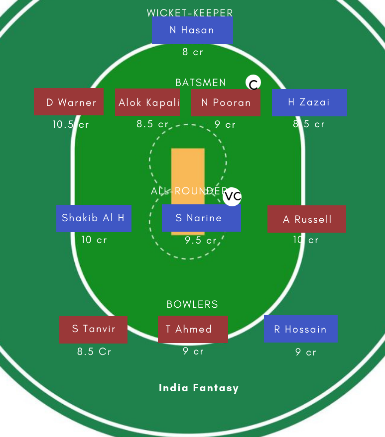 Batsmen- David Warner (c), Nicholas Pooran, Sabbir Rahman, Alok Kapali, Liton Das