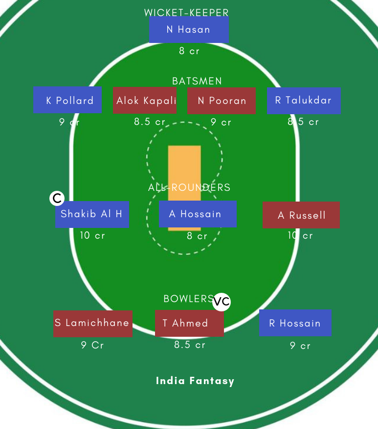 Batsmen- Kieron Pollard, Hazratullah Zazai, Rony Talukdar, Naim Sheikh