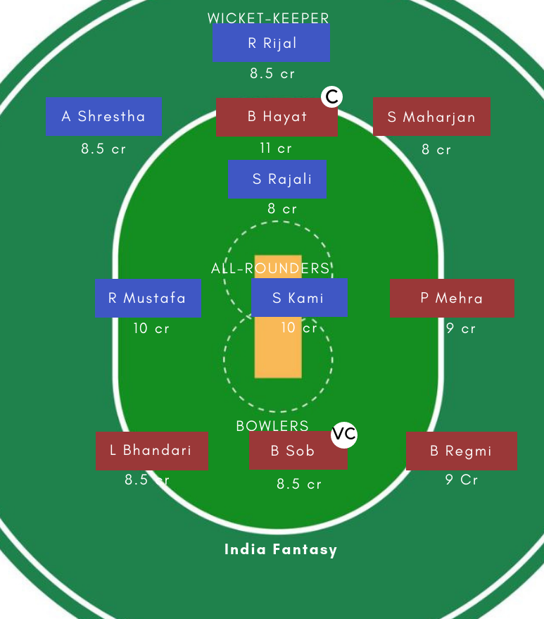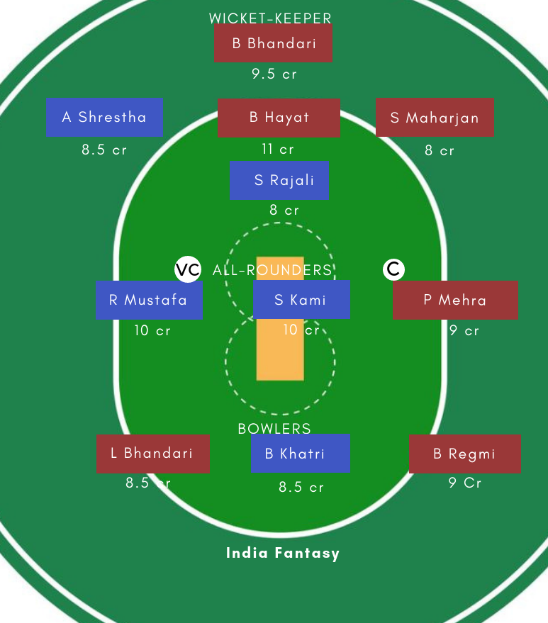 Batsmen: B Bhandari, Babar Hayat, S Sunar, S Maharjan, B Sharki,
