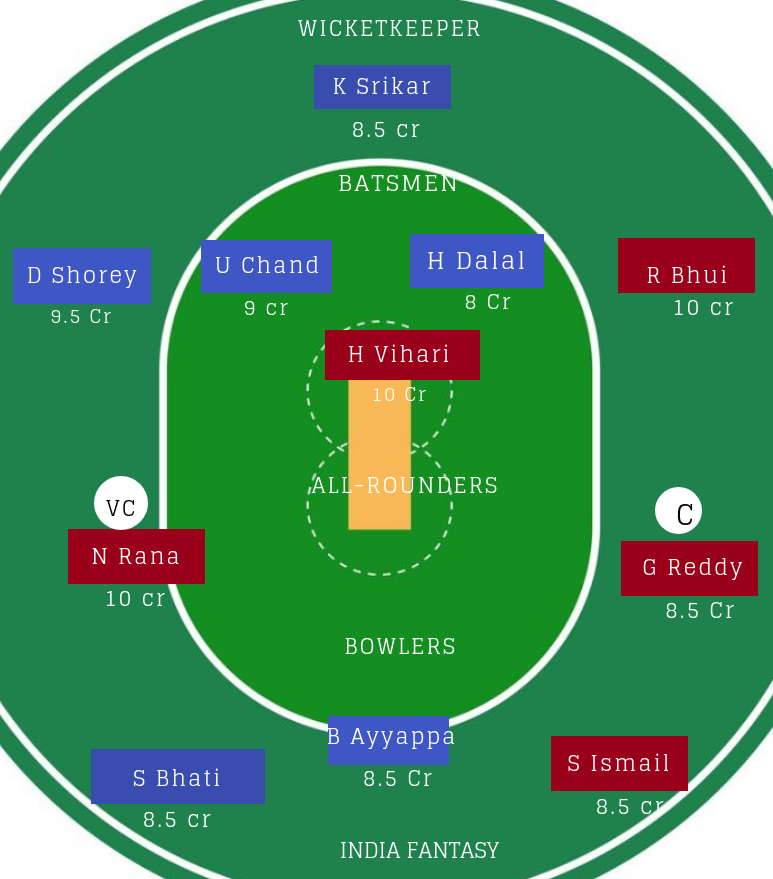 आंध्र से आप Ricky Bhui को जरूर टीम में रखें. इस बल्लेबाज ने लगभग 61 की औसत से तीन मैचों में 108 रन बनाए हैं. पांचवें बल्लेबाज के रूप में आपकी टीम में Hanuma Vihari होना चाहिए.