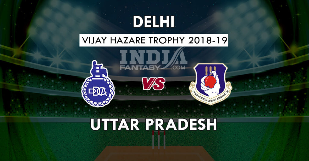 भारतीय घरेलू टूर्नामेंट विजय हज़ारे ट्रॉफी 2018-19 का कारवां धीरे धीरे आगे की ओर बढ़ रहा है और टीमों के बीच दिलचस्प मुकाबले भी देखने को मिल रहे हैं। इसी क्रम में टूर्नामेंट के अगले मुकाबले में Uttar Pradesh की टीम ग्रुप B के 5 वें राउंड के मुकाबले में सोमवार, 24 अगस्त को Delhi के खिलाफ मुकाबले के लिए उतरेगी। इन दोनो के बीच होने वाले इस मुकाबले की मेज़बानी Palam A Stadium करेगा।