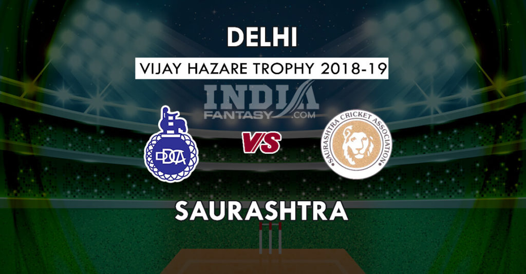 दिल्ली का ऐतिहासिक फिरोज़शाह कोटला मैदान विजय हज़ारे ट्रॉफी 2018- 19 के ग्रुप B के अगले मुकाबले में Delhi और Saurashtra के बीच होने वाले मैच की मेज़बानी करेगा। दोनो टीम इस मैच से टूर्नामेंट में अपने अभियान की शुरुआत करेगा। दोनो टीम में बेहतरीन खिलाड़ियों की मौजूदगी से इस मैच के रोमांचक होने और दोनो के बीच एक ड़े मुकाबले की उम्मीद है।