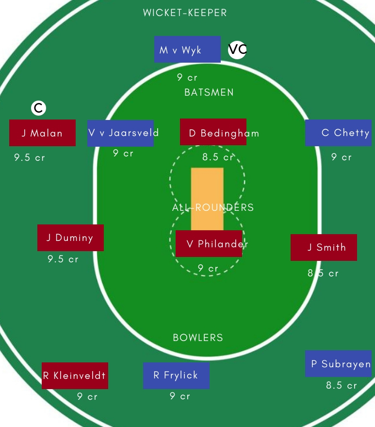 ऑलराउंडर: V Philander, G Linde, J Duminy, A Mgijima, J Smith