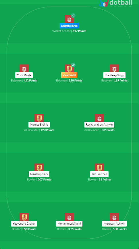 KXIP vs RCB Dotball TEAM NEWS ⦁ Royal Challengers Bangalore were just unlucky in the last game, and should not be making changes in the starting lineup. ⦁ Kings XI Punjab too is expected to have a similar starting XI for this fixture as they were also dealt a wrong card when it comes to fate.