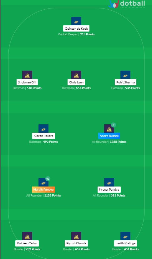 Batsman: K Pollard (MI), C Lynn (KKR), S Gill (KKR)