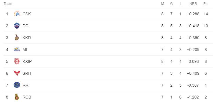 Mumbai Indians are in the fourth spot in the league table and have an even record so far with four wins and losses. The team has been in good form but has shown its series of inconsistencies as well. With superstars such as Rohit Sharma, Quinton de Kock and Keiron Pollard in the roster, they have genuine firepower capable of beating anyone on their given day. The franchise will be looking to make the finals this season and hope that they tie the record of IPL championships with CSK.