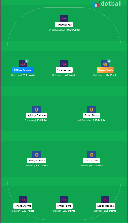 RR vs DC Dotball Fantasy Team