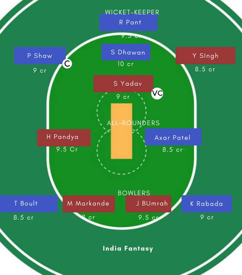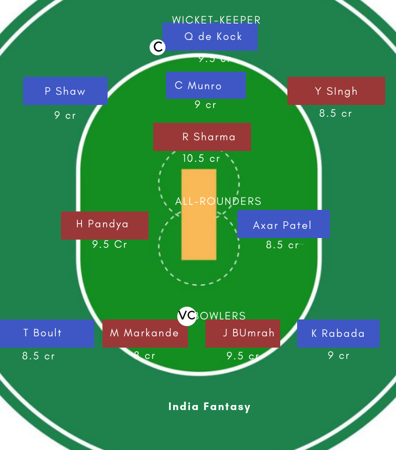 Quinton de Kock, Colin Munro, Prithvi Shaw and Hardik Pandya are potential match winners from both the sides who can change the course of the game anytime.