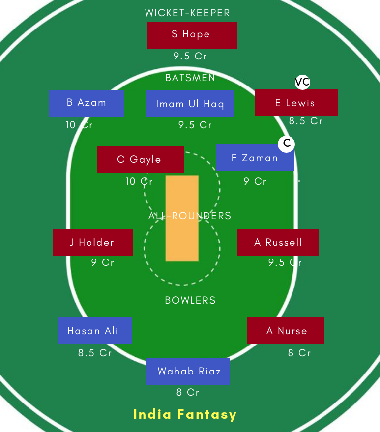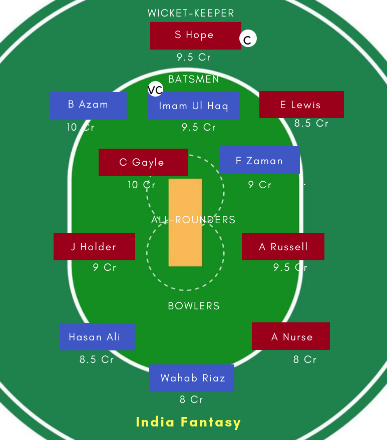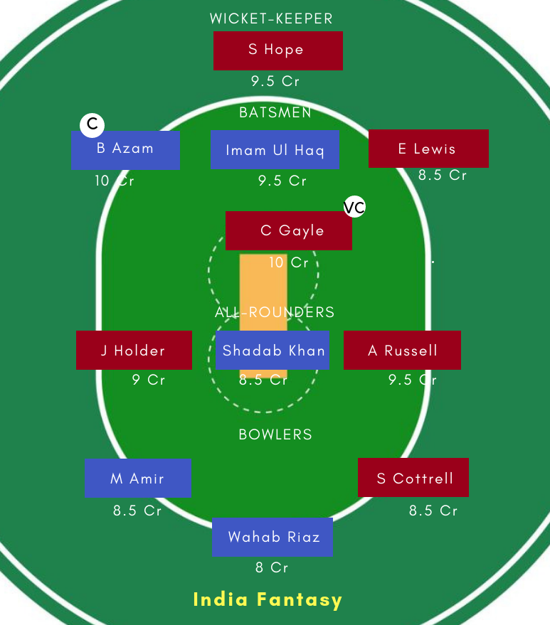 Both the sides boast a formidable top-order. While Windies have Chris Gayle, Shai Hope, Evin Lewis in their top order, Pakistan’s top order comprising of Babar Azam, Fakhar Zaman and Imam Ul Haq is in fine form for a couple of months.