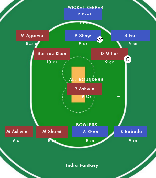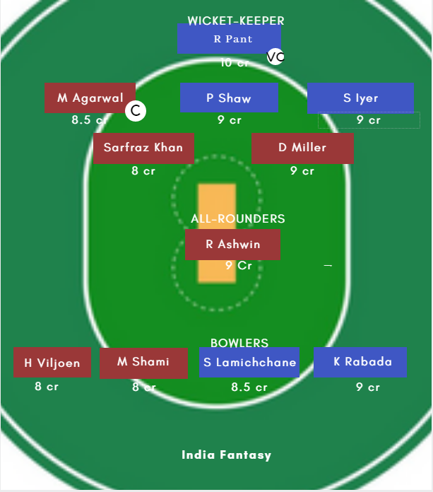 KXIP VS DC DREAM11 TEAM