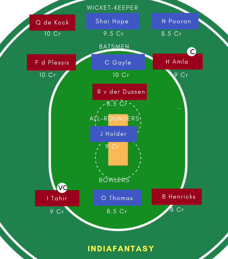 Batsmen: Chris Gayle, Darren Bravo, Nicholas Pooran, Shimron Hetmyer,