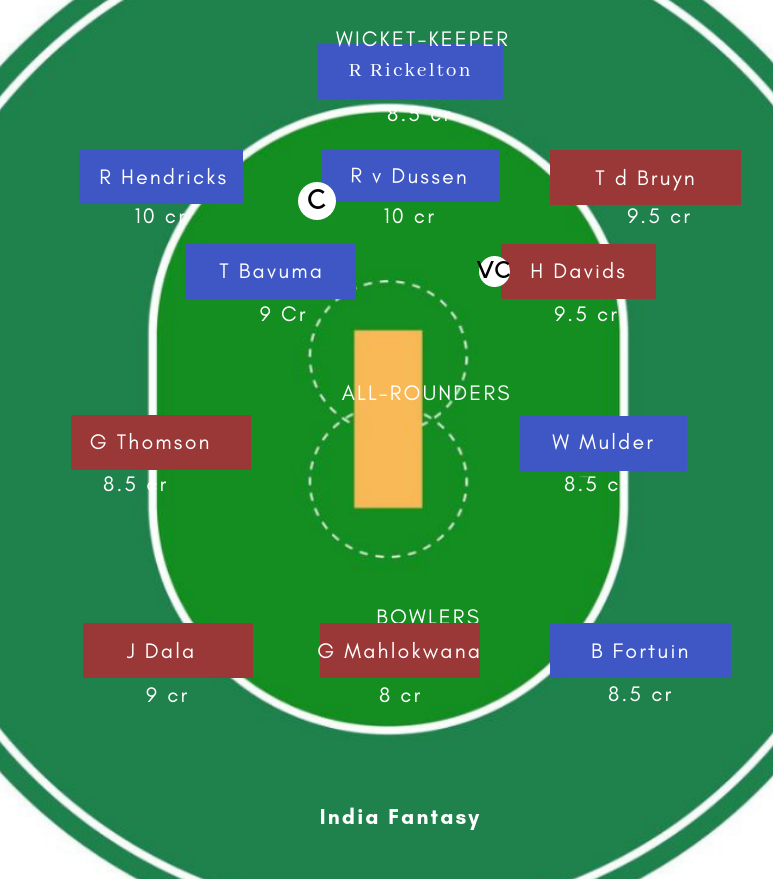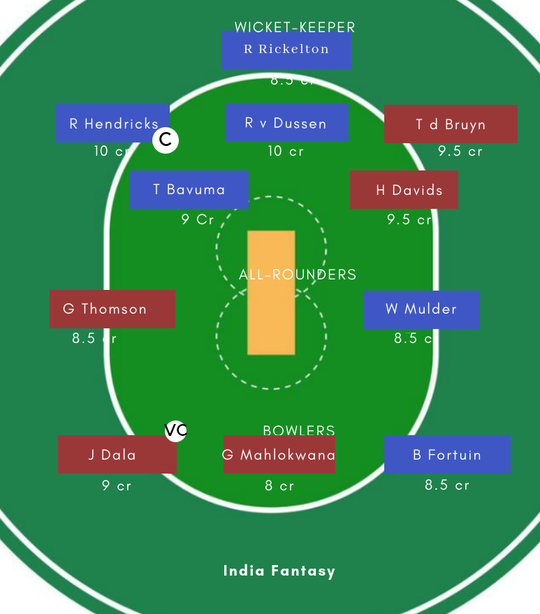 Lions fantasy picks: Rickleton, van der Dussen and skipper Bavuma have led the charge for Lions with the bat. Fortuin is the leading wicket-taker in the competition while Phangiso, Siboto and Pongolo have been decent with the ball.