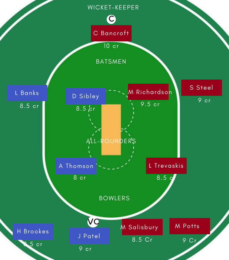 Alex Lees, Ben Raine, Cameron Bancroft (c & wk), Graham Clark, Matt Salisbury, Jack Burnham, Brydon Carse, Gareth Harte, Matty Potts, Liam Trevaskis, Scott Steel