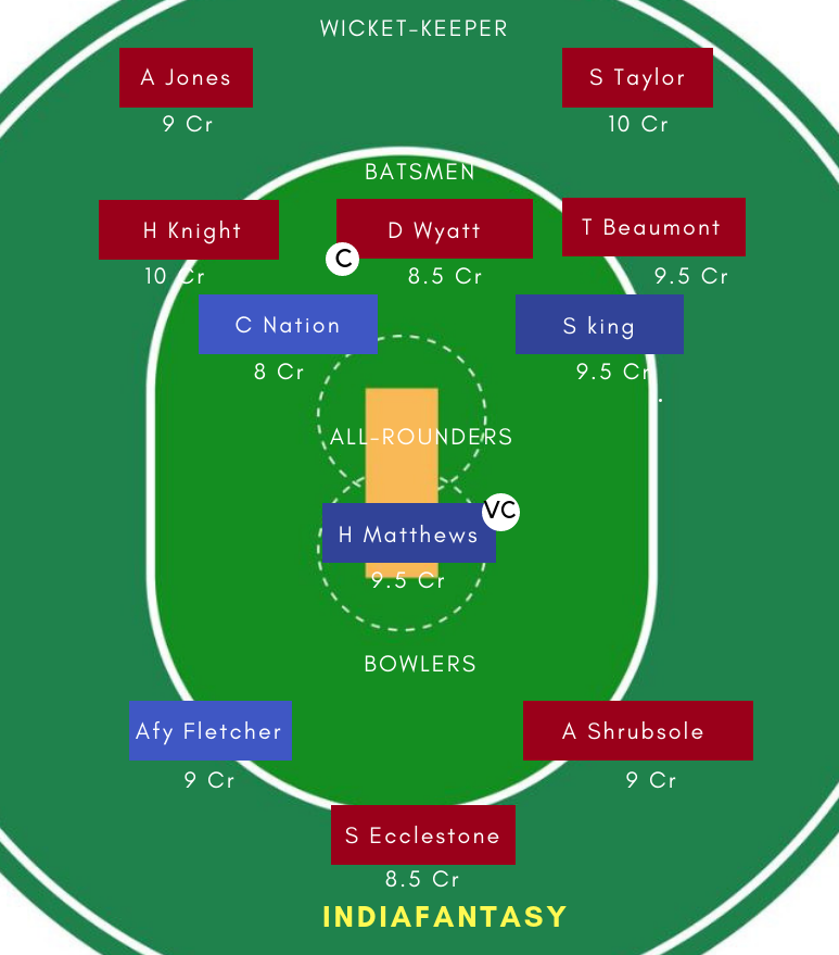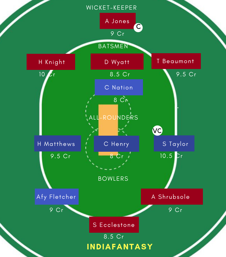 Batters – Amy Jones, Danielle Wyatt, Tammy Beaumont, Lauren Winfield, Heather Knight(c)