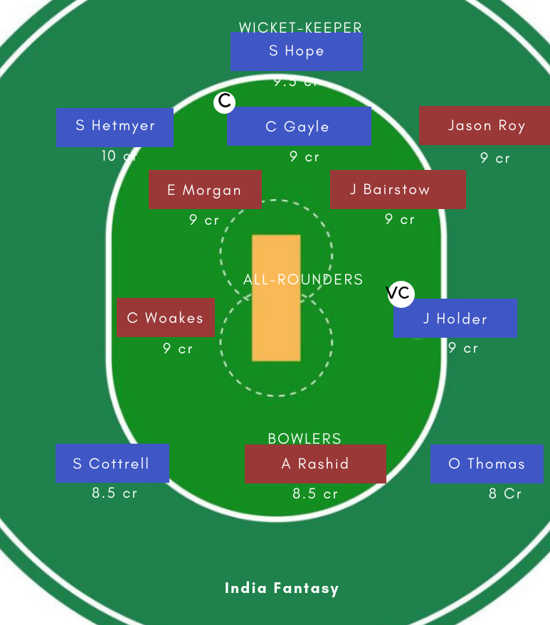 Batsmen – John Campbell, Chris Gayle, Shimron Hetmyer, Darren Bravo