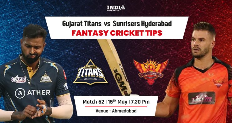 Gujarat Titans go head-to-head against Sunrisers Hyderabad in the 62nd match of the Indian Premier League at Narendra Modi Stadium, Ahmedabad on 15th May, Monday at 7:30 PM IST.
