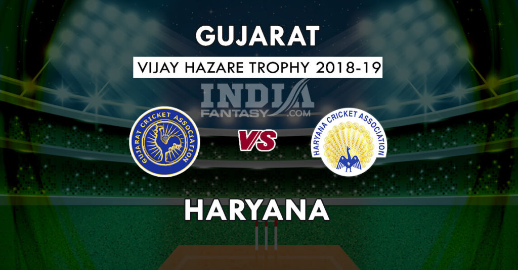 विजय हज़ारे ट्रॉफी 2018 अपने सफर को तय करता हुआ अब सेकेंड लास्ट हफ्ते में प्रवेश लर चुका है जहां अब 11वें राउंड के मुकाबले खेले जाएंगे। ग्रुप C के 11वें राउंड के मुकाबले में Gujarat और Haryana की टिमें 03 अक्टूबर को एक दूसरे के खिलाफ मुकाबले के लिए उतरेगी। दोनों टीमों का प्रदर्शन टुर्नामेंट में अच्छा रहा है और दोनो ही टीम आत्मविश्वास से भड़ी हुई लग रही है।