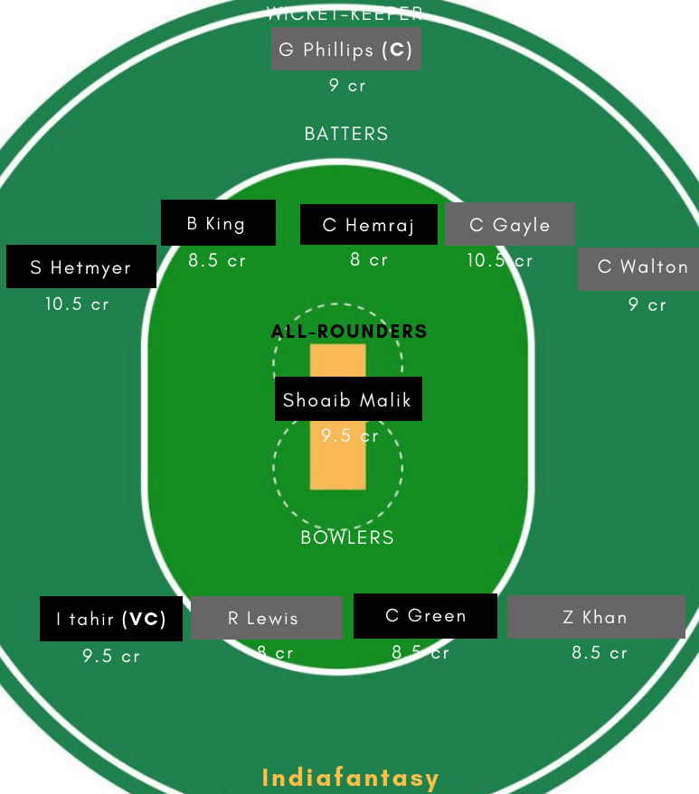 Nicholas Pooran, Sherfane Rutherford, Chris Green, Odean Smith, Romario Shepherd, Ben Laughlin, Imran Tahir, Shoaib Malik, Shimron Hetmyer, Chanderpaul Hemraj, Brandon King.