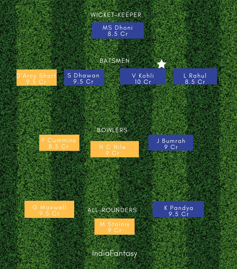 India – KL Rahul, Rohit Sharma/Shikhar Dhawan, Virat Kohli(capt), Rishabh Pant/Vijay Shankar, MS Dhoni (wk), Dinesh Karthik, Krunal Pandya, Umesh Yadav/Siddarth Kaul, Yuzvendra Chahal, Mayank Markande, Jasprit Bumrah