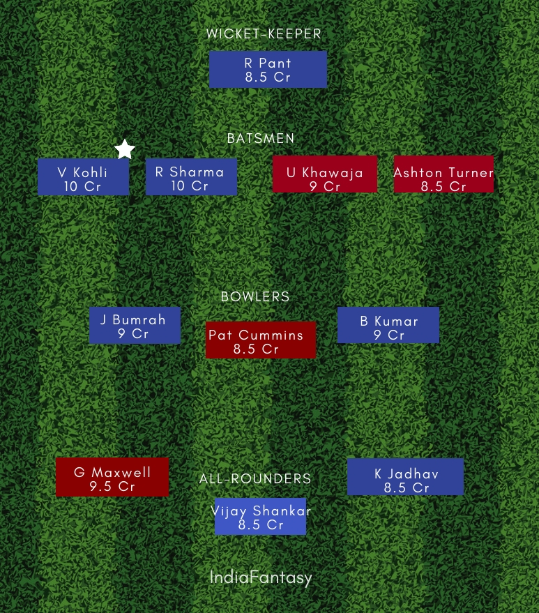 India XI: R Sharma, S Dhawan, V Kohli, R Pant, K Jadhav, V Shankar, R Jadeja, B Kumar, K Yadav, M Shami, J Bumrah