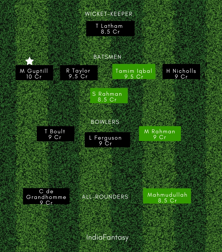 Colin Munro, Henry Nicholls, Martin Guptill, Tom Latham, Ross Taylor, Colin de Grandhomme, James Neesham, Santner/Astle, Southee/Boult, Henry, Lockie Ferguson