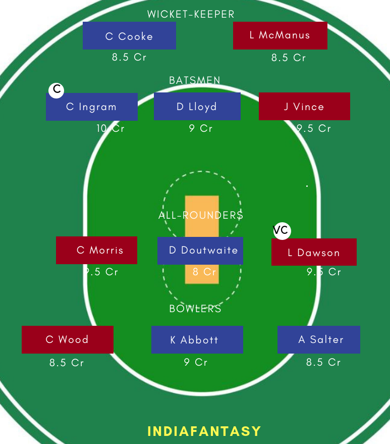 Andrew Salter, Chris Cooke (wk), Graham Wagg, Colin Ingram (c), Marchant de Lange, David Lloyd, Jeremy Lawlor, Billy Root, Fakhar Zaman, Lukas Carey, Daniel Douthwaite