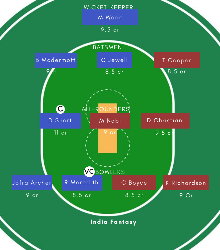 Bowlers – Riley Meredith, Simon Milenko, Clive Rose, David Moody/Q Ahmad, Jofra Archer