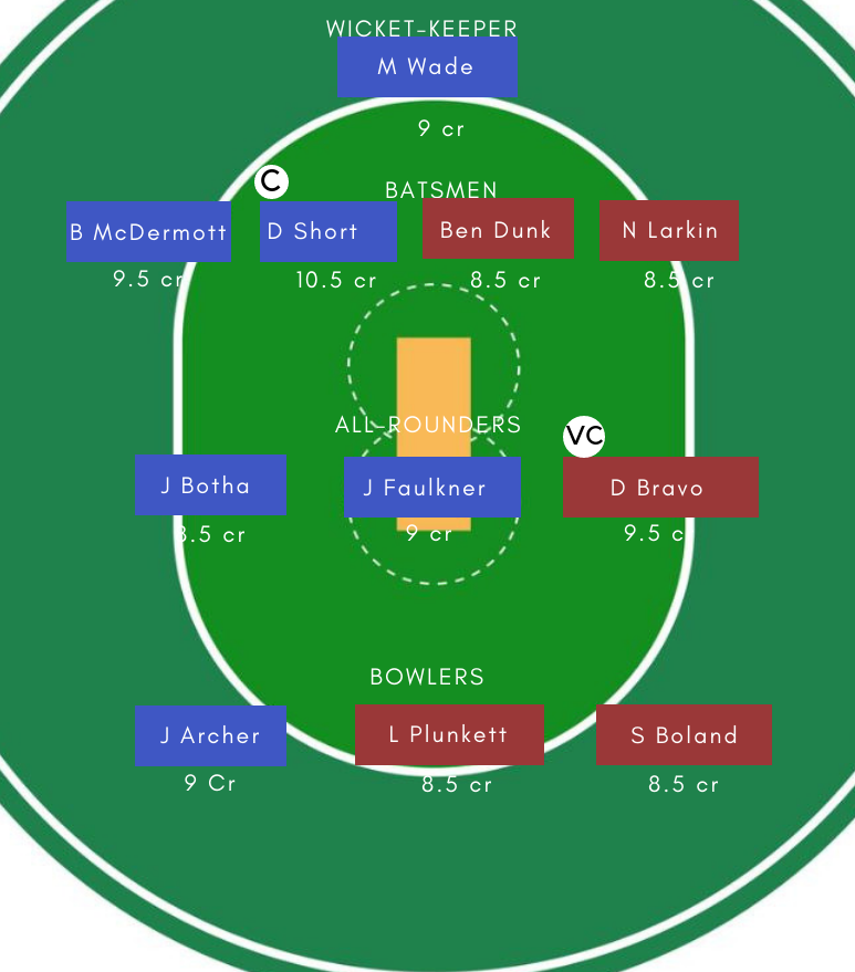 Nic Maddinson (C), Tom O’Connell, Ben Dunk, Jackson Bird, Scott Boland, Dwayne Bravo, Jonathan Merlo, Liam Bowe, Seb Gotch, Evan Gulbis, Nick Larkin, Lance Morris, Liam Plunkett