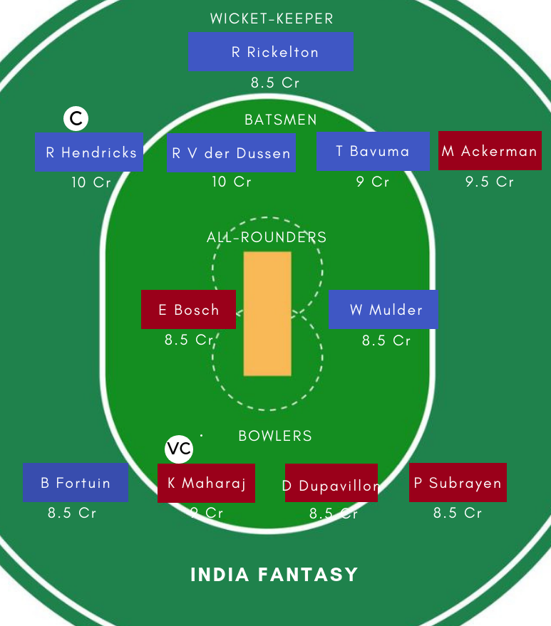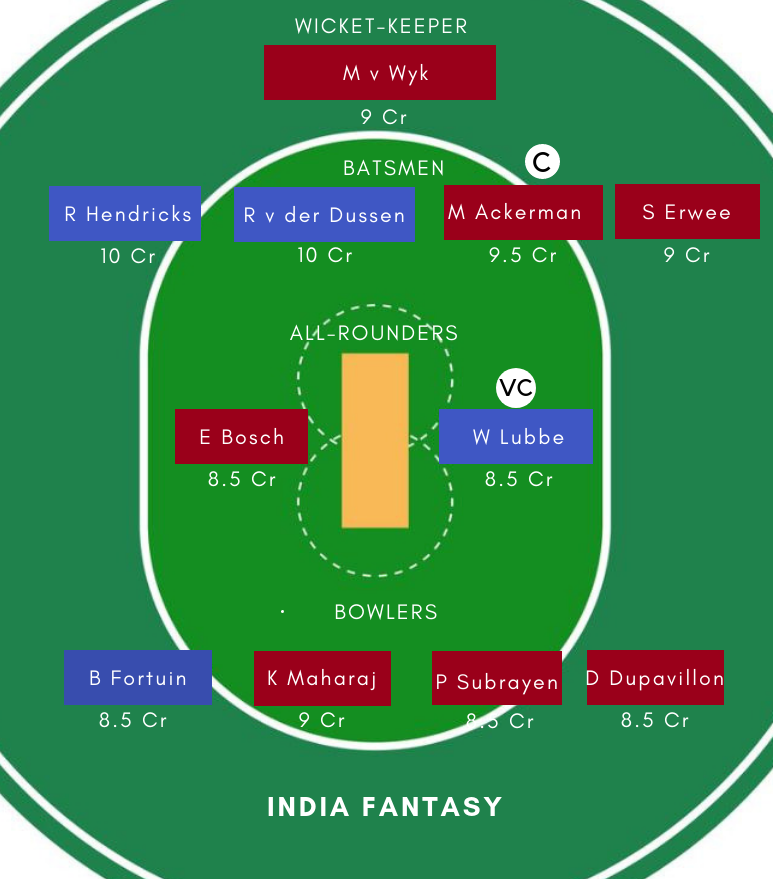 Beuran Hendricks, Reeza Hendricks, Dwaine Pretorius, Rassie van der Dussen, Temba Bavuma, Bjorn Fortuin, Ryan Rickelton, Malusi Siboto, Nono Pongolo, Wiaan Mulder, Wihan Lubbe