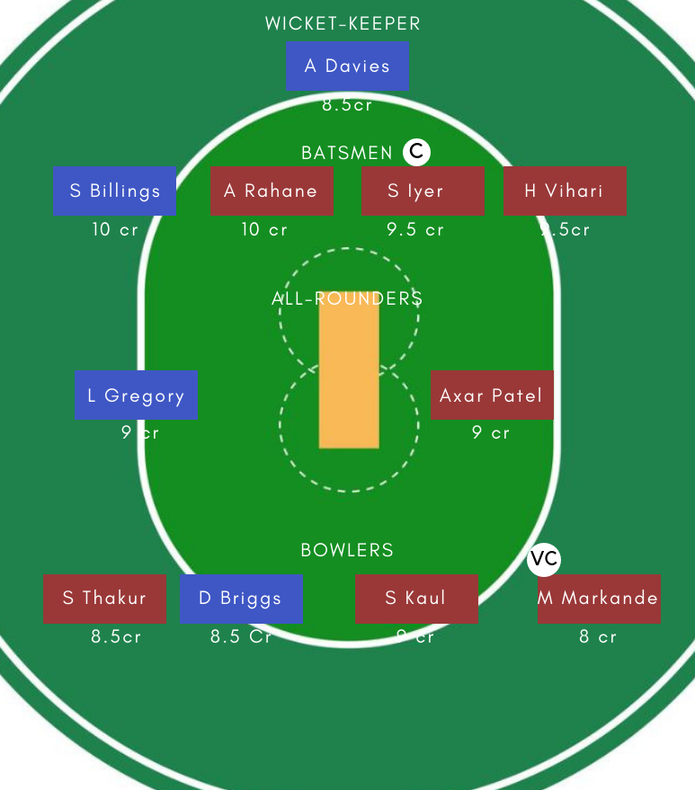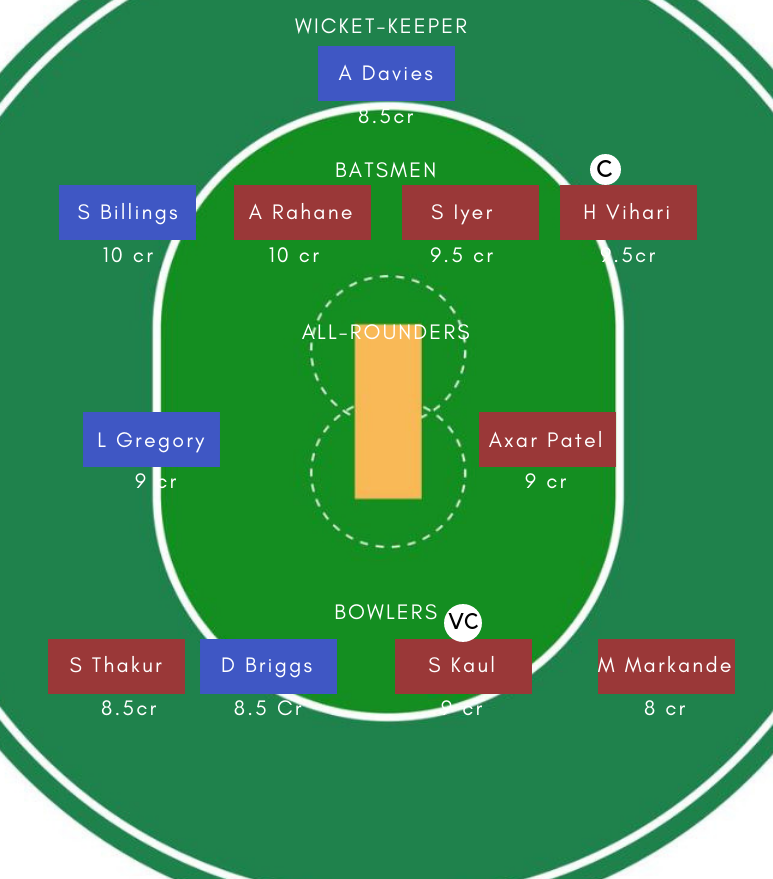 Batsmen: Ankit Bawne, Shreyas Iyer, Hanuma Vihari, Ajinkya Rahane (c)