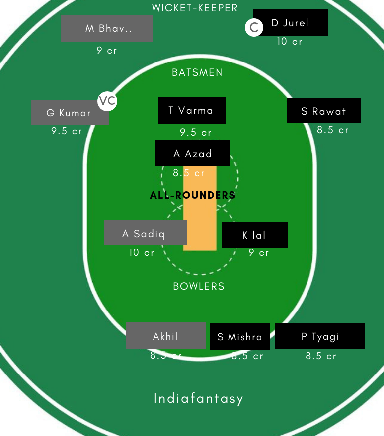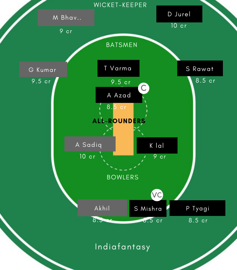 Dhruv Chand Jurel (Captain), Suved Parkar, Thakur Tilak Varma, Nehal Wadhera, Arjun Azad, Shashwat Rawat, Varun Lavande, Salil Arora, Karan Lal, Atharva Ankolekar, Pankaj Yadav, Akash Singh, Sushant Mishra, Purnank Tyagi & Vidyadhar Patil
