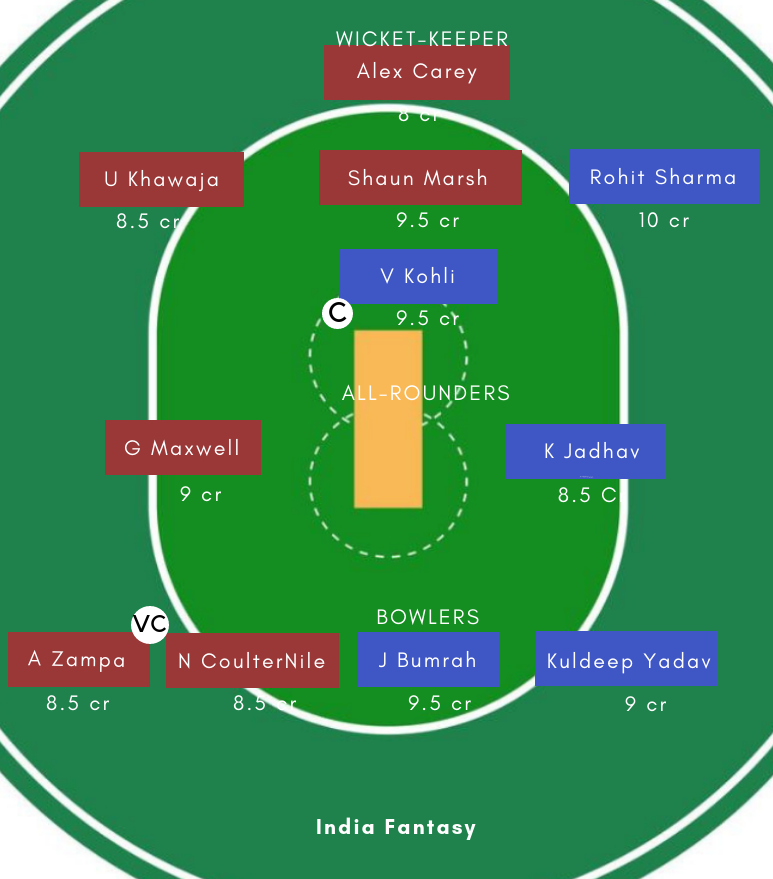 The VCA in Nagpur has big boundaries but the average first innings score at this venue is 261 and in recent times spinners have been the most effective here. So, Kuldeep Yadav, Adam Zampa and Kedar Jadhav can be the one for tomorrow’s game.