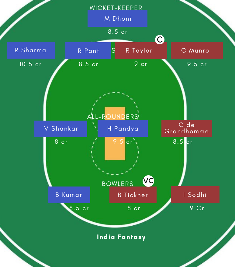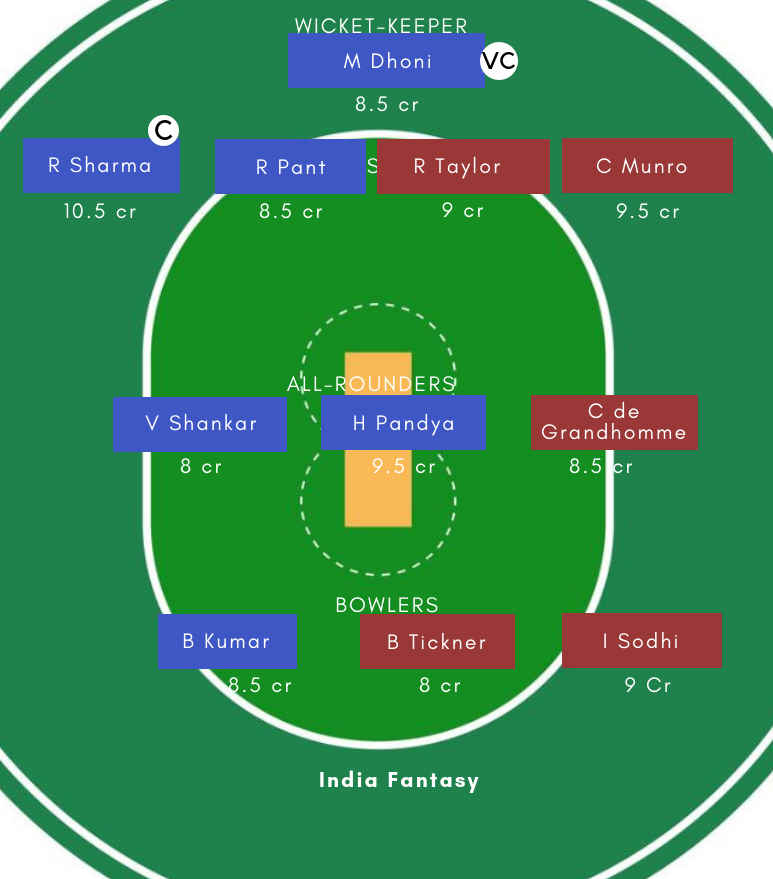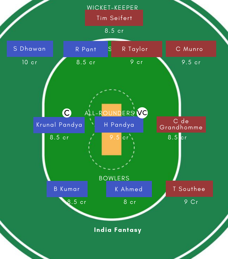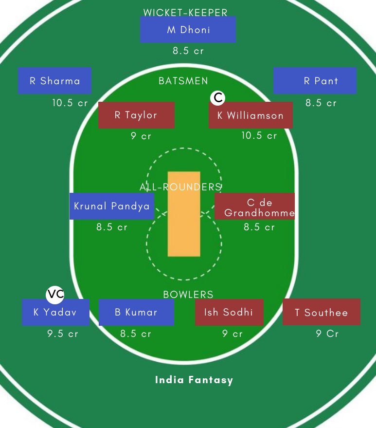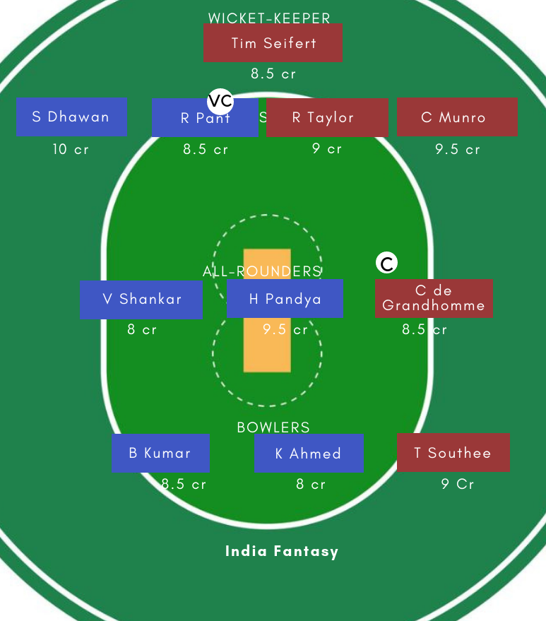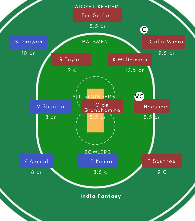 Kane Williamson, Ross Taylor, Tim Seifert, Colin Munro, Colin de Grandhomme, Scott Kuggeleijn, Tim Southee, Ish Sodhi, Blair Tickner, Mitchell Santner. (Doubt: James Neesham, Daryl Mitchell)