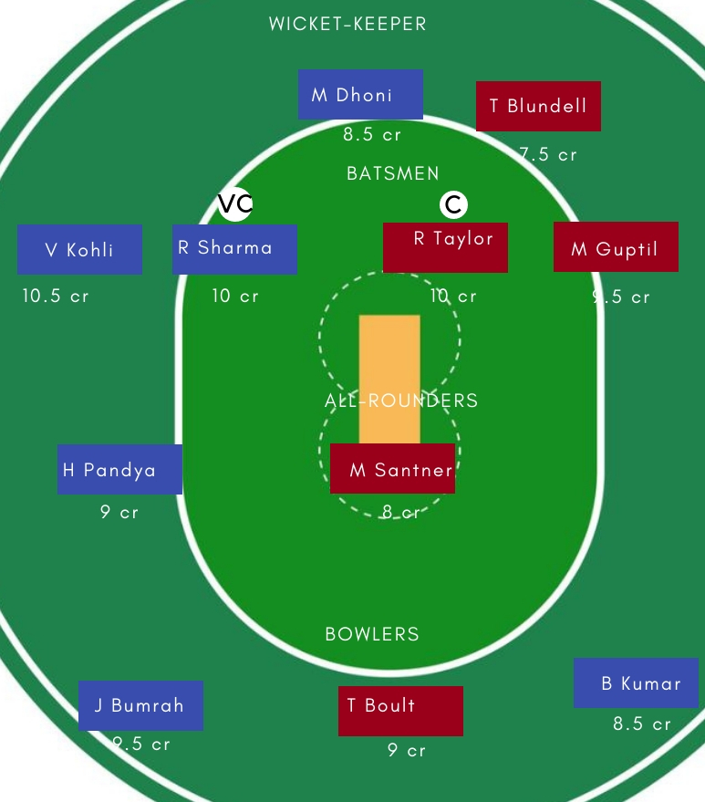 गेंदबाज – Trent Boult, Tim Southee,Mitchell Santner, Lockie Ferguson
