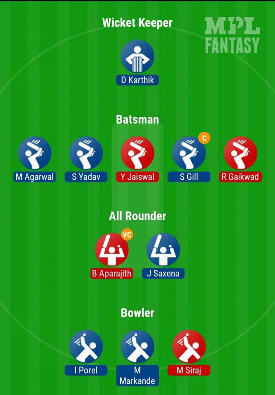 Mayank Agarwal, Shubman Gill(c), Anmolpreet Singh, Suryakumar Yadav, Priyam Garg, Dinesh Karthik(w), Axar Patel, Mayank Markande, Jalaj Saxena, Dhawal Kulkarni, Ishan Porel, Avesh Khan,