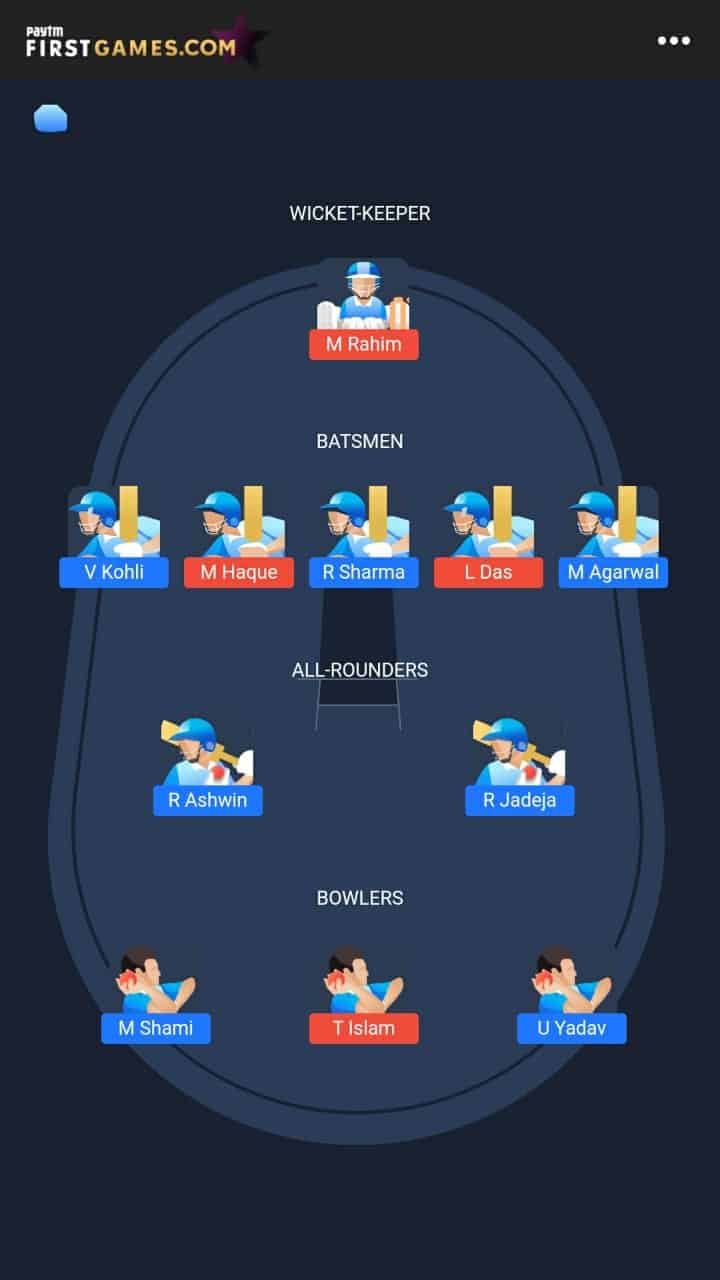 India vs Bangladesh PayTM First Captains Team Prediction: