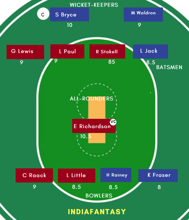 L Little, H Little, C Raack, GH Lewis, O Prendergast, EAJ Richardson, S MacMahon, L Paul, MV Waldron, R Stokell, L Delany (c).