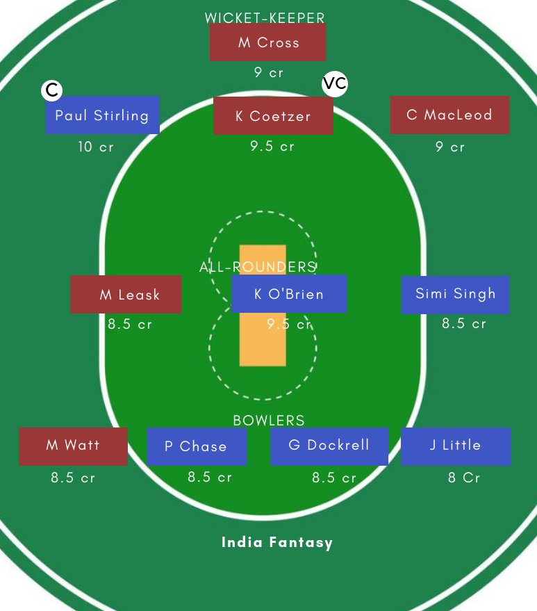 Note: This IRE vs SCO Dream11 Prediction is based on news sourced from various sources. We suggest you pick your playing 11 from the squad listed above basis IRE vs SCO team news. Kindly revisit before the deadline to get the final update of the IRE vs SCO Dream11 Prediction. Also, hit the bell icon on the bottom right side of your screen to get all the latest Dream11 Prediction updates.