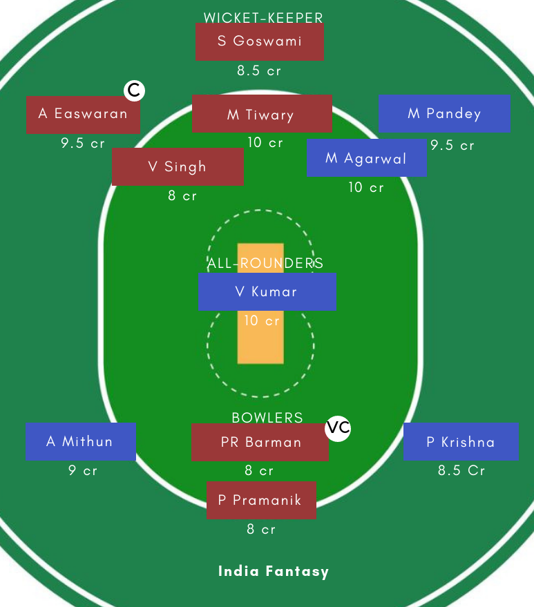 Batsmen- Manish Pandey (c), Karun Nair, Krishnamurthy Siddharth, Rohan Kadam