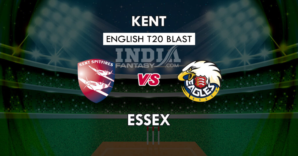 Kent Spitfires की टीम जब इंग्लिश T20 ब्लास्ट में अपने अगले मुकाबले के लिए Essex Eagle की टीम से शुक्रवार को भिड़ेगी तो इसकी किशिश इस मैच में जीत दर्ज कर अंतिम चार में अपना स्थान पक्का करते हुए टूर्नामेंट के अगले राउंड में प्रवेश करने की होगी। इन दोनो के बीच यह मुकाबला काउंटी मैदान पर खेला जाएगा।