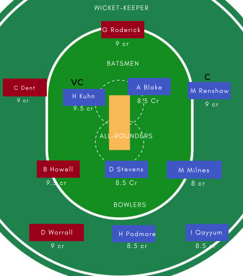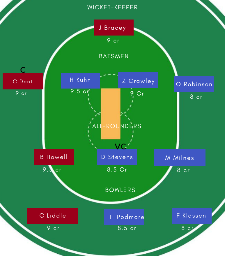 बल्लेबाज: Z Crawley, S Dickson, M Renshaw, O Robinson, A Blake