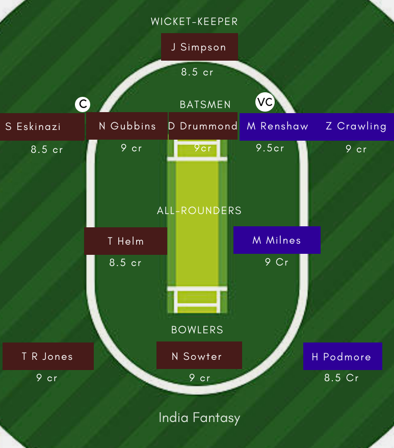 George Scott, Nathan Sowter, Ross Taylor, James Harris, Sam Robson, John Simpson (wk), Tom Helm, Max Holden, Toby Roland-Jones, Nick Gubbins, Stephen Sean Eskinazi (c)