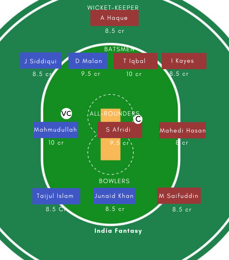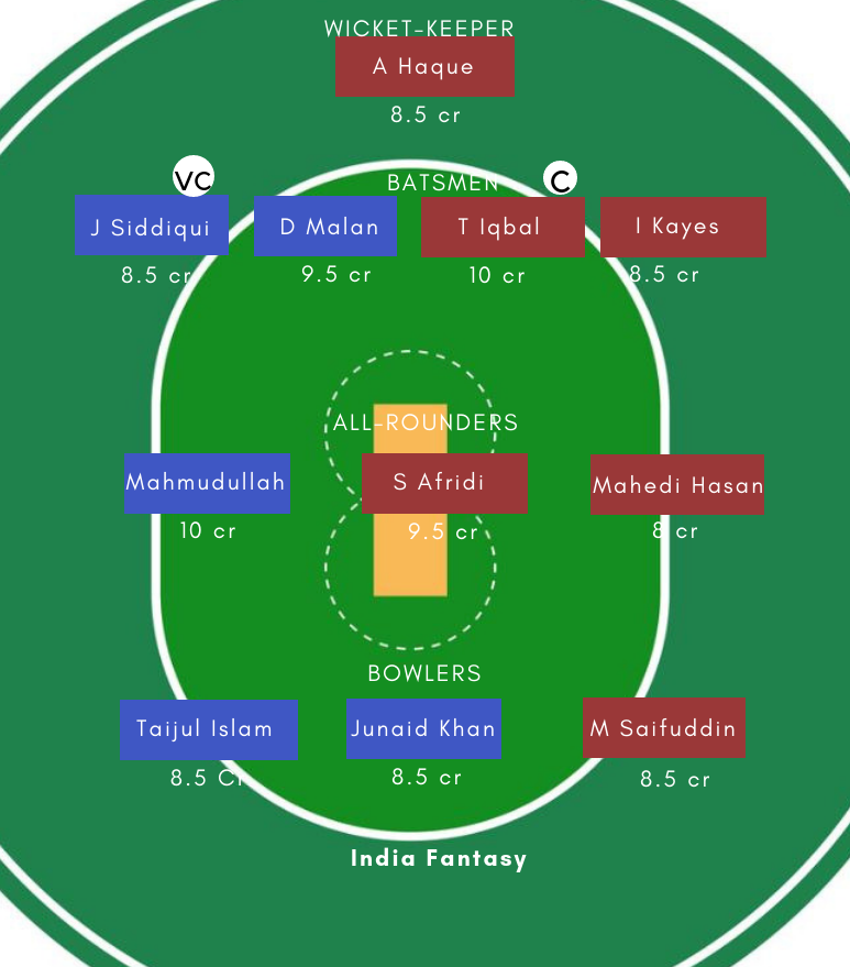 Batsmen- Junaid Siddique, Nazmul Hossain Shanto, Dawid Malan